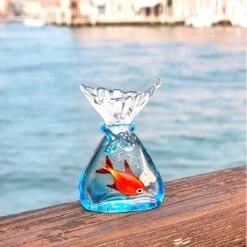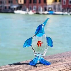 Exclusive and unique glass artwork of an eagle, handmade in amber glass, realized with free hand technique in solid glass.