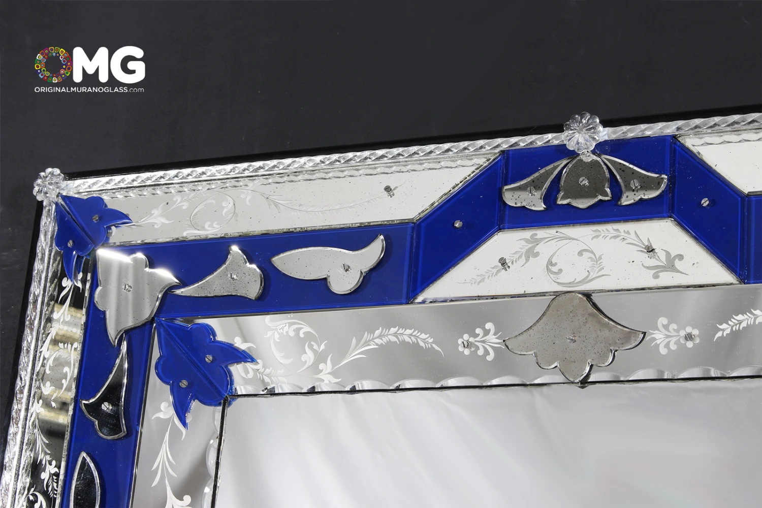 Venetian mirror, engraved and painted with free hands, made in Murano.