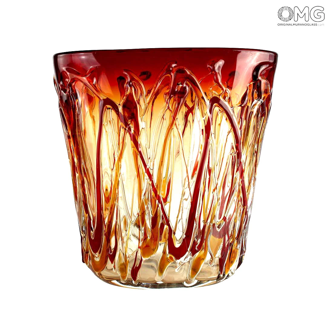 The dropping different colors of this blown vase are the main elements that give it its particular aura, as a fantastic drop painting Pollock’s pictures. In this way, an object of common use becomes an object of value useful for furnishing an imperial style table or wooden furniture.