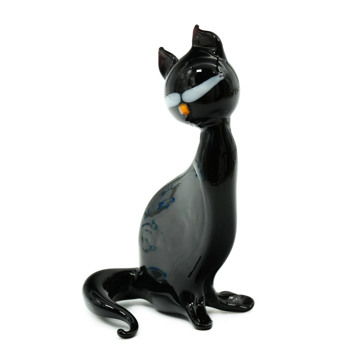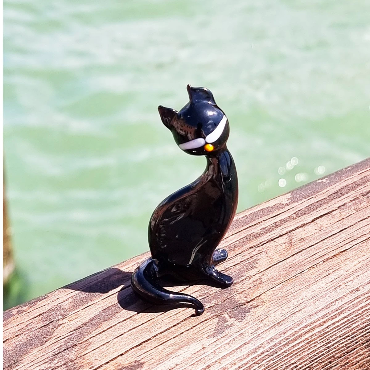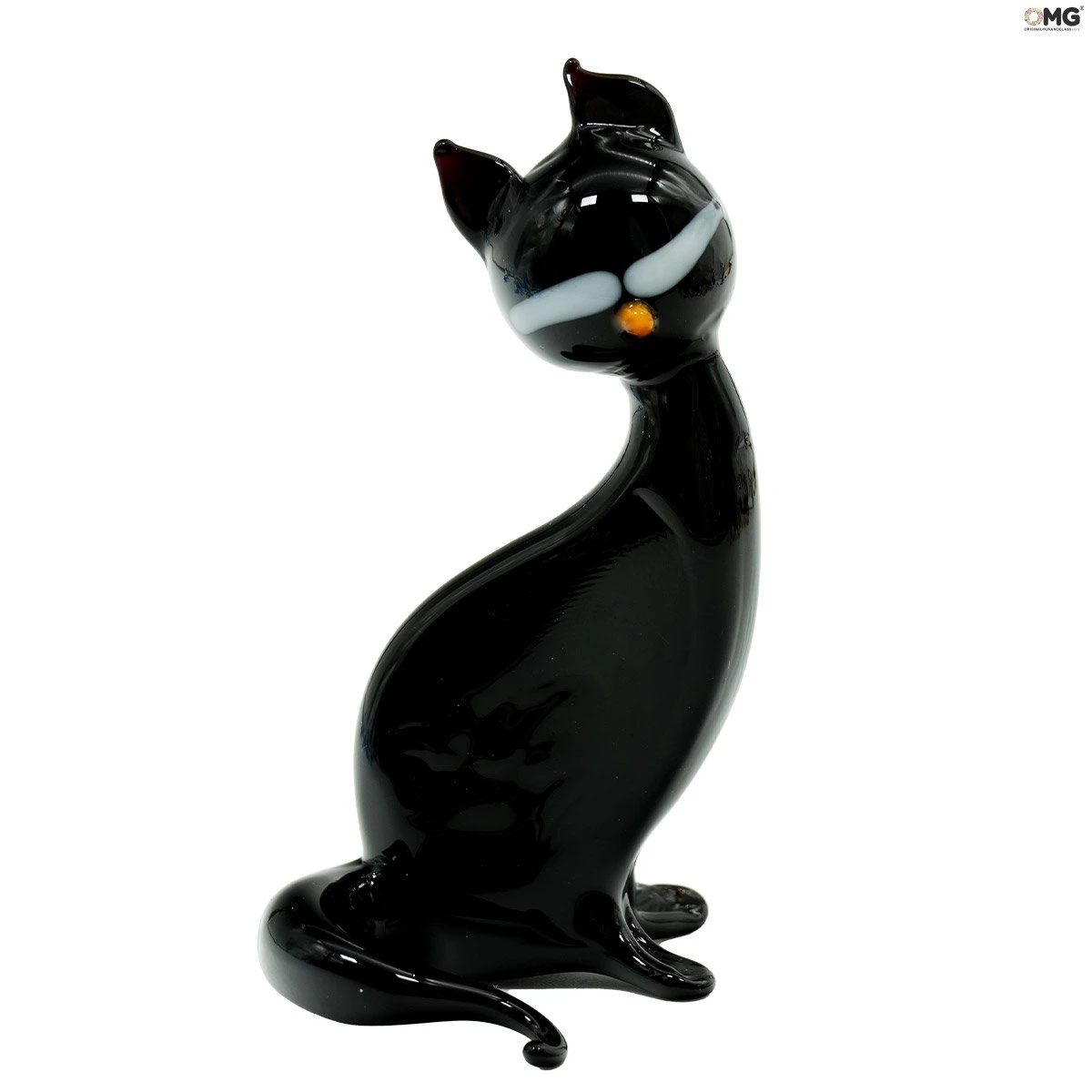 Exclusive Murano glass sculpture of a black cat, handmade with the technique of warm glass modellation. Handmade for our selection of animal figurines. Lovely sculpture to decore your house. Perfect for a very stylish desk.
