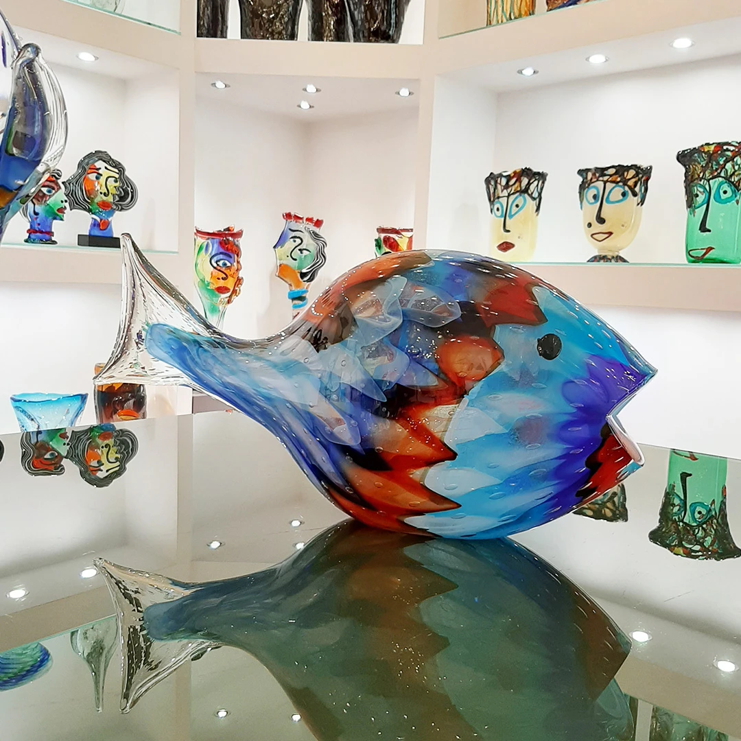 Blue Fish With Texture - Sculpture Murano Glass -Life Store clown fish original murano glass 3