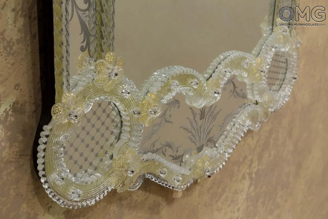 The mirror consists of a floral decoration made with Murano glass flowers and leaves.