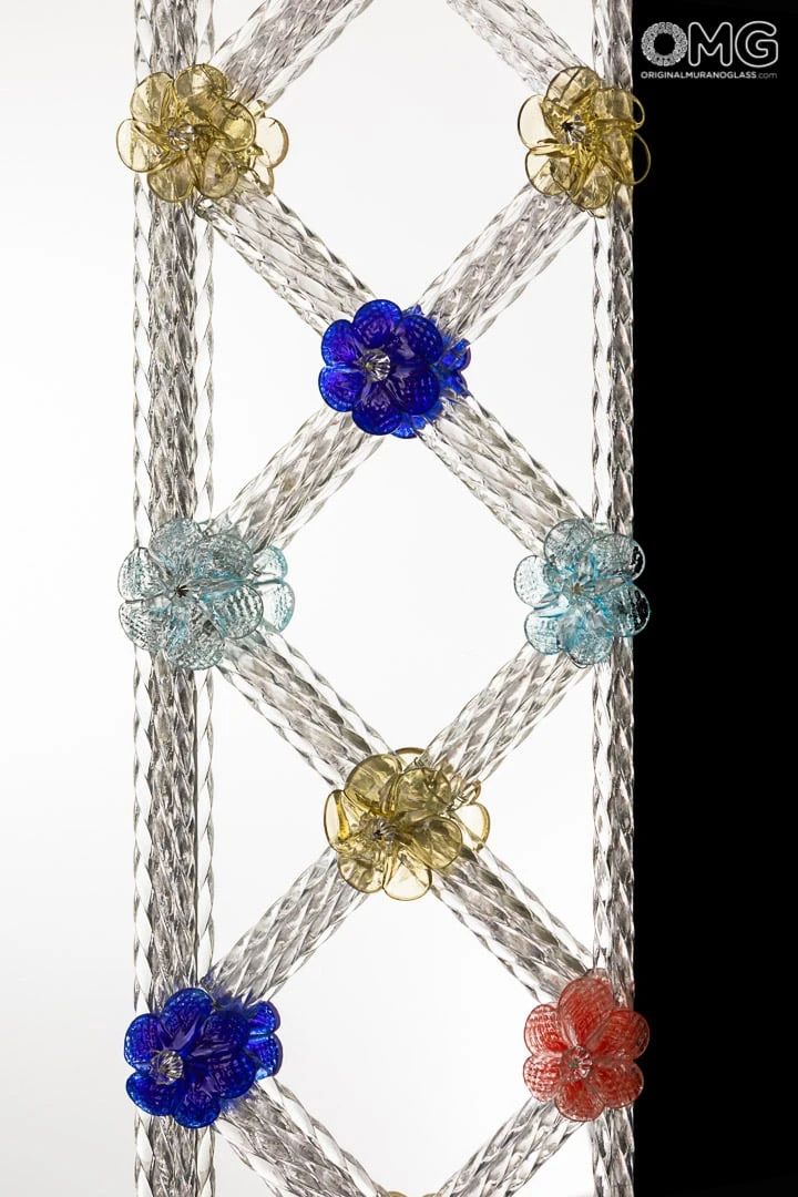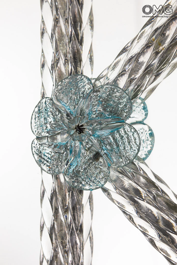 The mirror consists of a floral decoration made with Murano glass flowers and leaves.