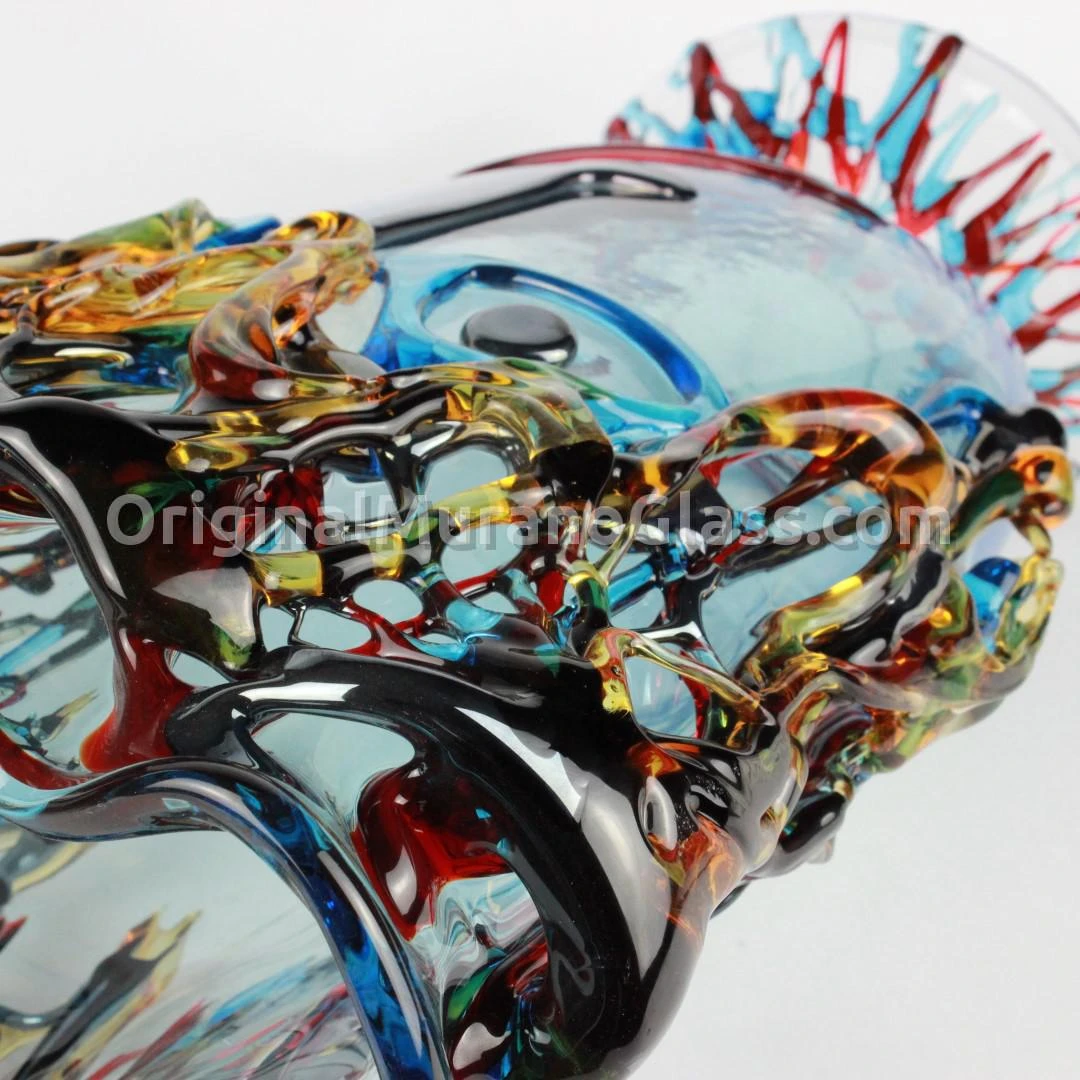 Stunning masterpiece of artglass handmade with multicolored glass. The vase is first made with glass blowing technique. Than decorated with glass castings. The result is a very colorfull vase, perfect to hosts flowers, especially sunflowers or to pair with white walls or of soft colors. Try it near a Picasso picture and give to your house an unmistakable style.