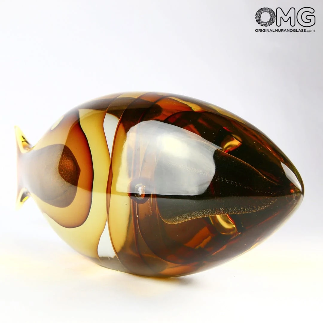 In this glass fish sculpture the sommerso technique is perfectly executed by the master Donà.