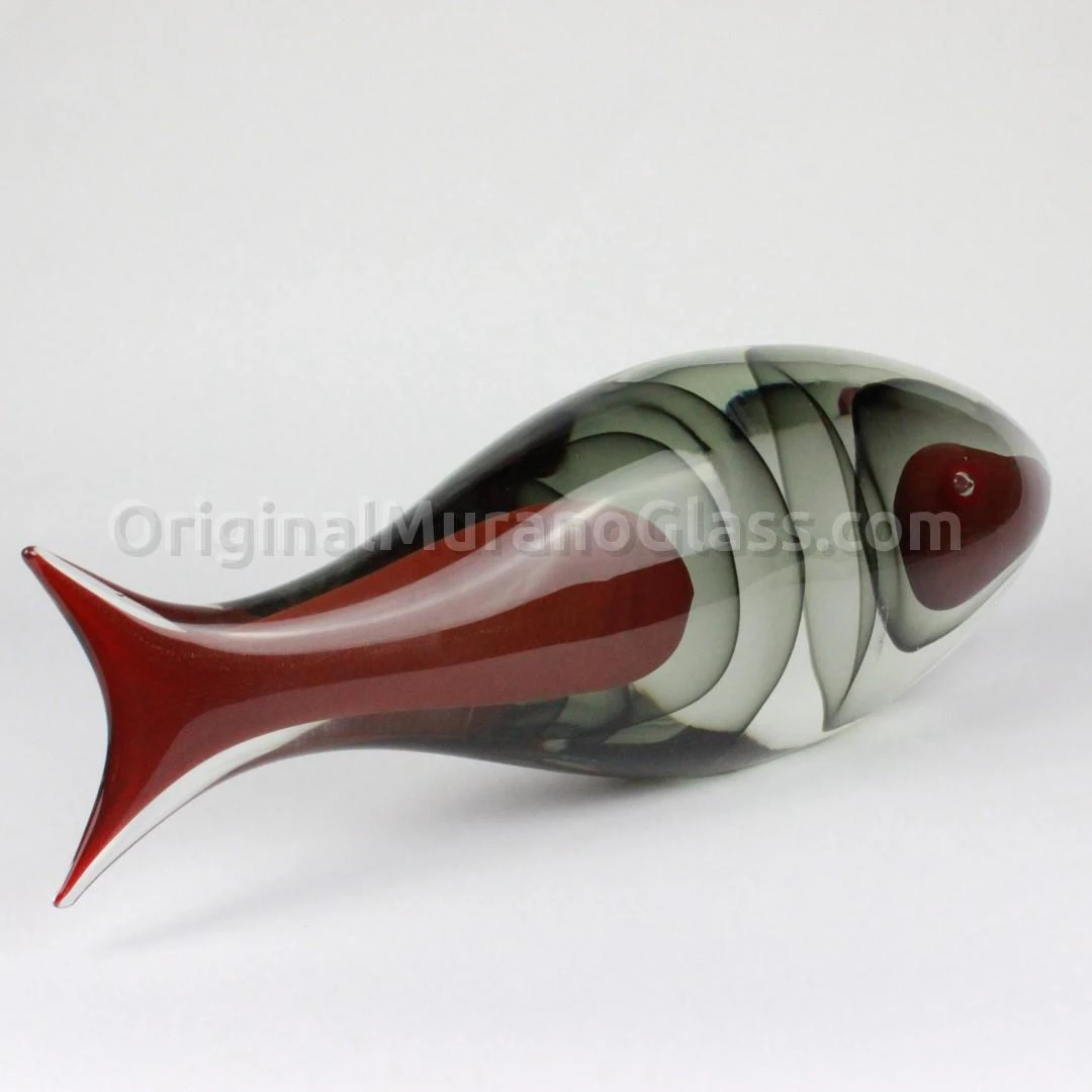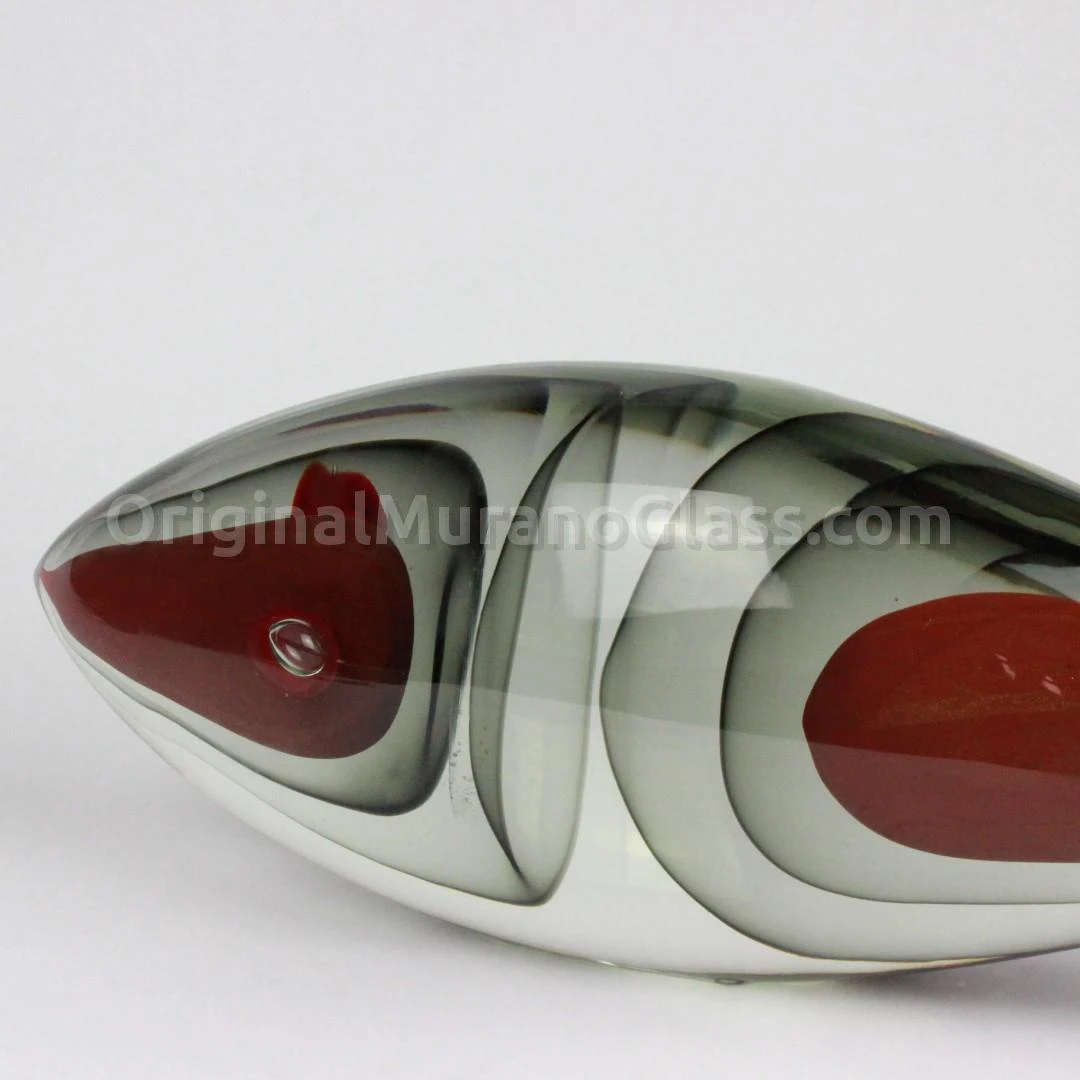 In this glass fish sculpture the sommerso technique is perfectly executed by the master Donà.