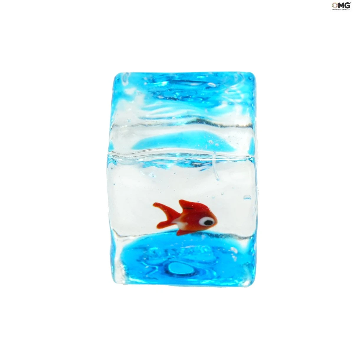Beautiful aquarium glass sculpture, made with “sommerso” technique. This art work is handmade with a very difficult technique: first the glass master makes the little fishes and after he melts them into a glass stone at high temperature.