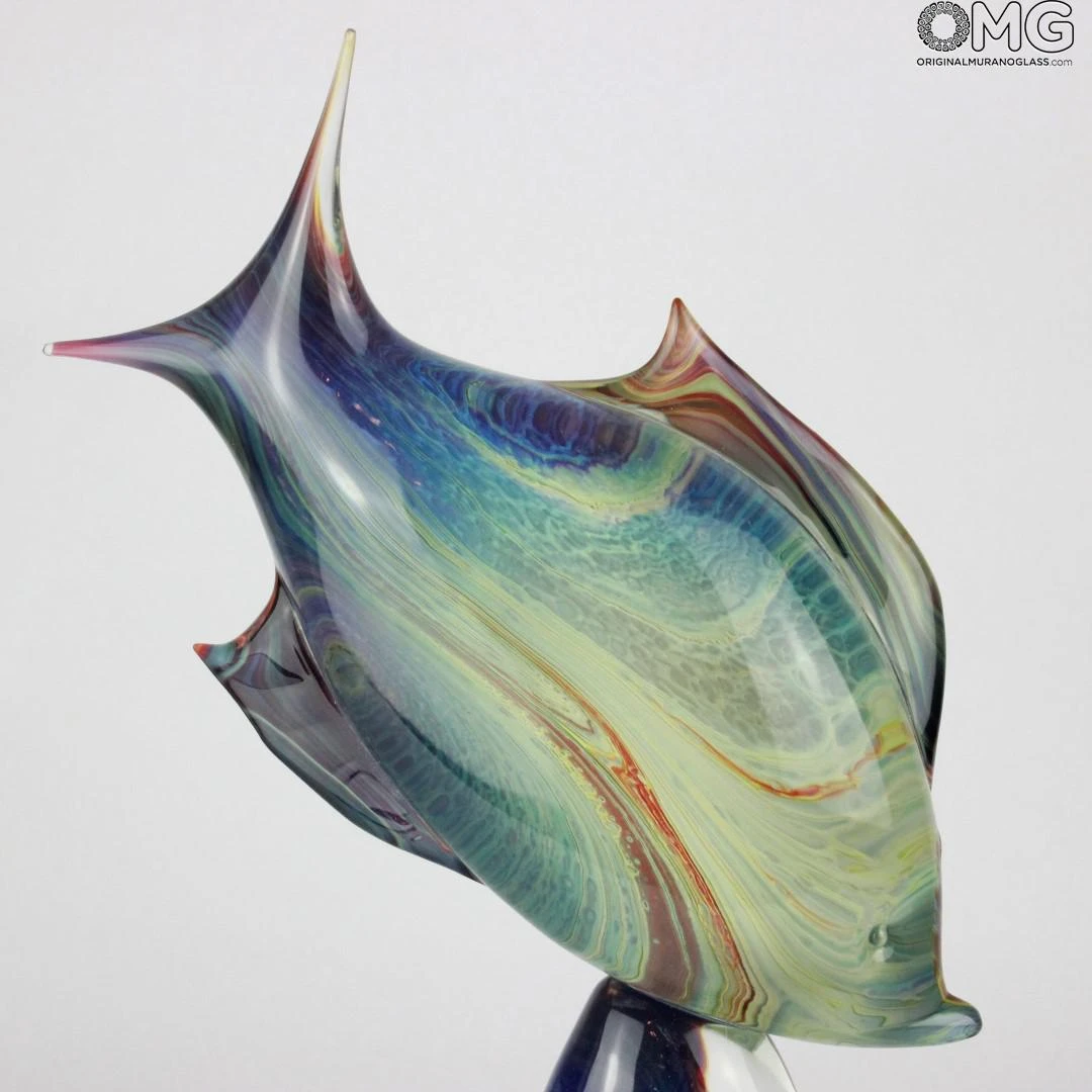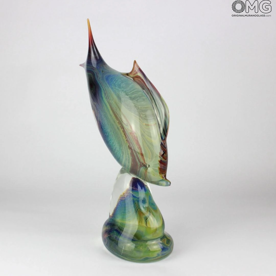 Fish sculpture handmade with the technique of warm glass modellation and glass crystal decoration.