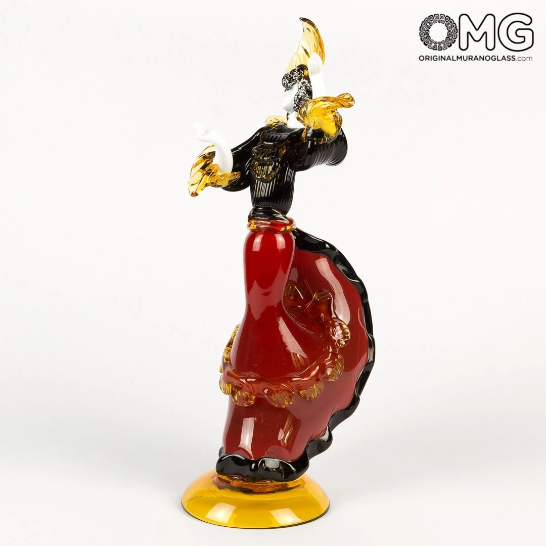 Beautiful sculptures of a couple of dancers, interelly handmade with the technique of warm glass modellation in red.