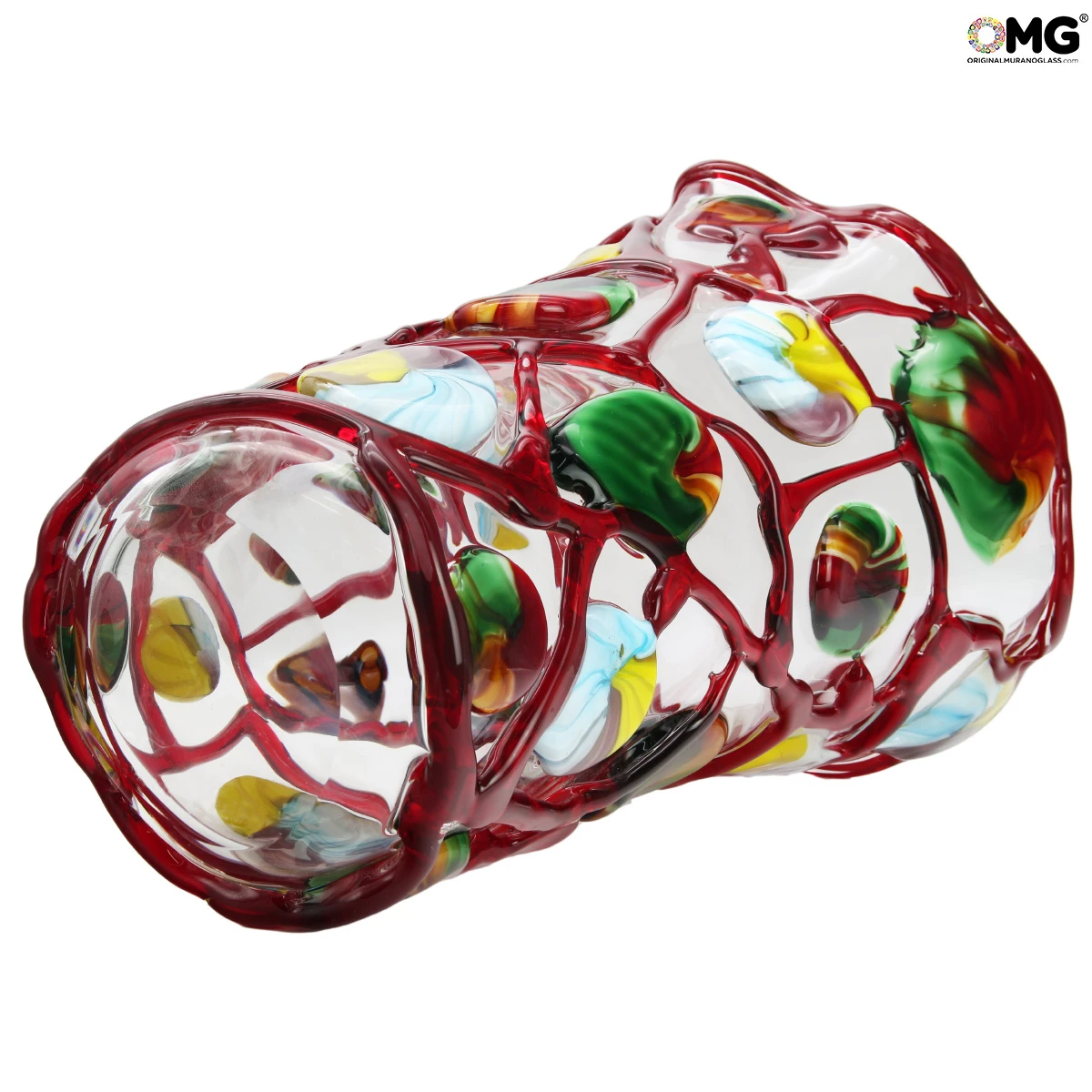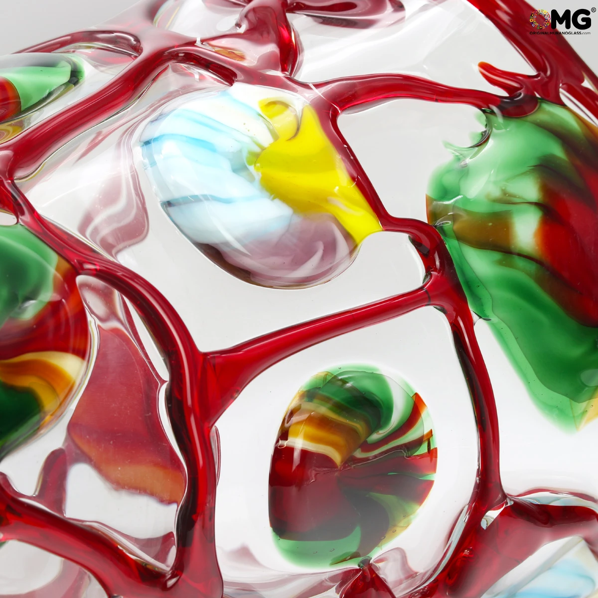 The particular wavy texture and the alternation of colors were carried out by the master glassmaker in a masterly way to create a work of art of easy appreciation but of great scenic impact, ideal for embellishing any environment.
