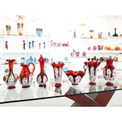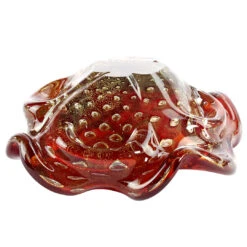 Luxury handmade vase with the famouse blowing technique, realized in amber Murano Glass and real gold leaf.