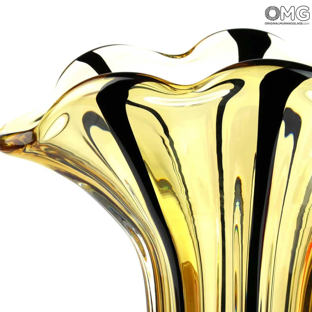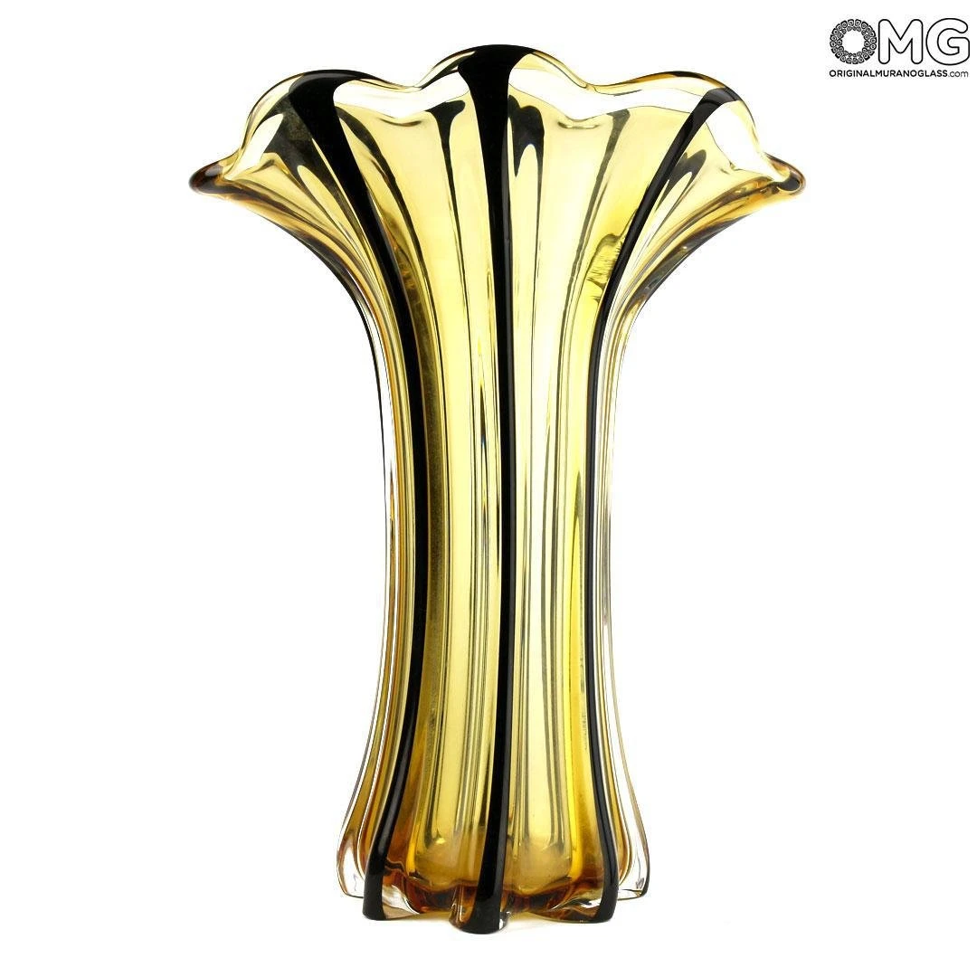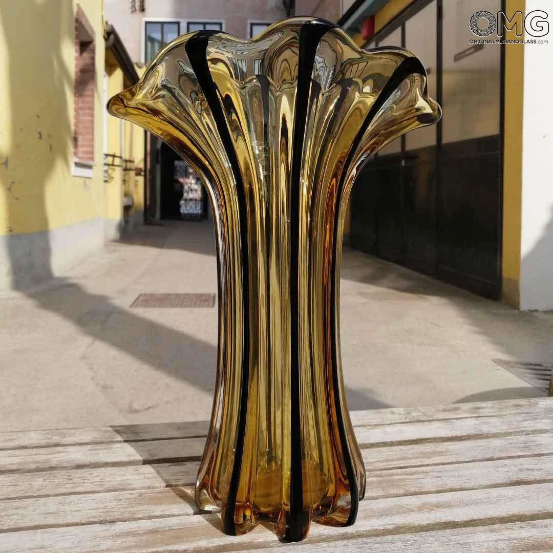 Luxury handmade vase with the famouse blowing technique, realized in Murano amber Glass.