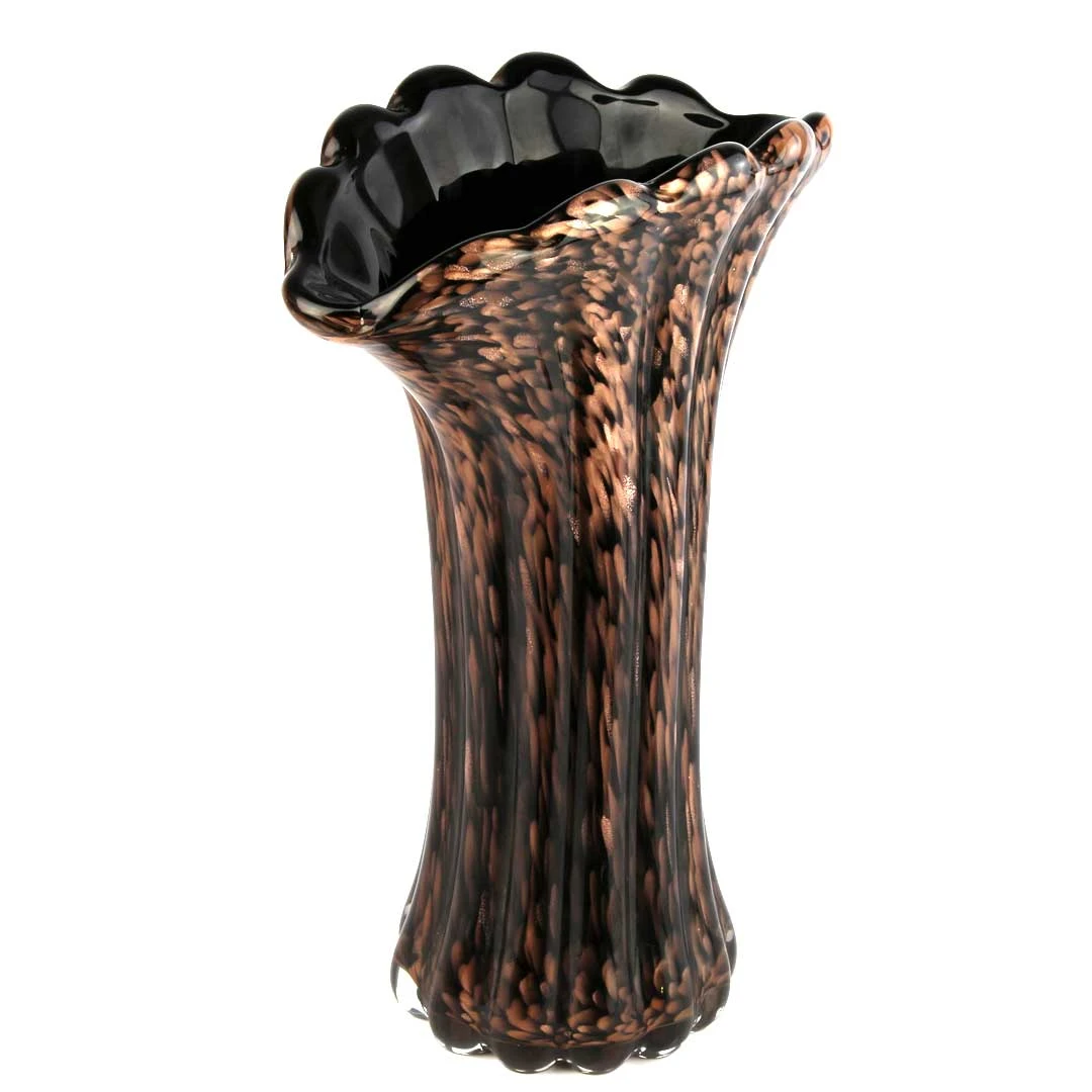 Luxury handmade vase with the famouse blowing technique, realized in Murano Black Glass with avventurina.