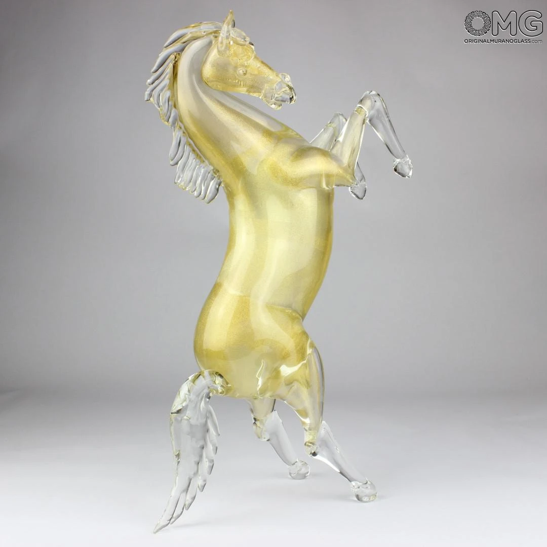 Exclusive Horse Sculpture, handmade with the technique of glass warm modellation in glass and 24 carats gold decorations.
