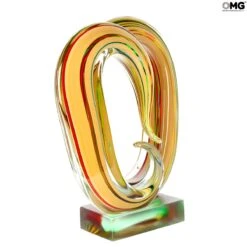 Double wave in multicolor paste glass hand-worke. This venetian glass sculpture impresses with its sinuous geometries and the liveliness of its colors. It lends itself perfectly to decorate various environments, from the living room to the study. It can be hosted on an important table or it can be comfortably placed on the ground to decorate the whole living room.