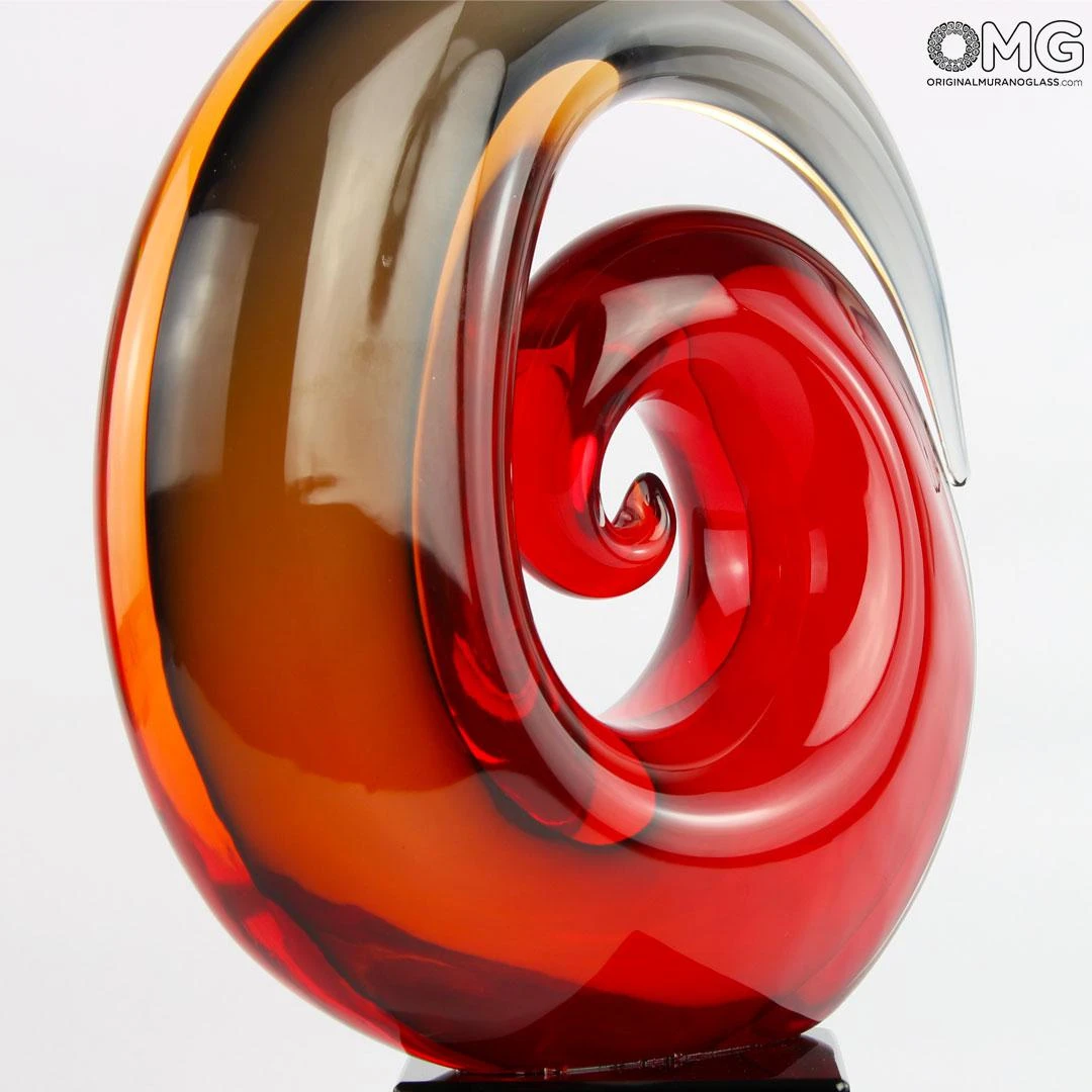 Abstract sculpture realized with submerged glass and warm modellation technique. Bright colors and great dimensions make it perfect for your modern home furniture.
