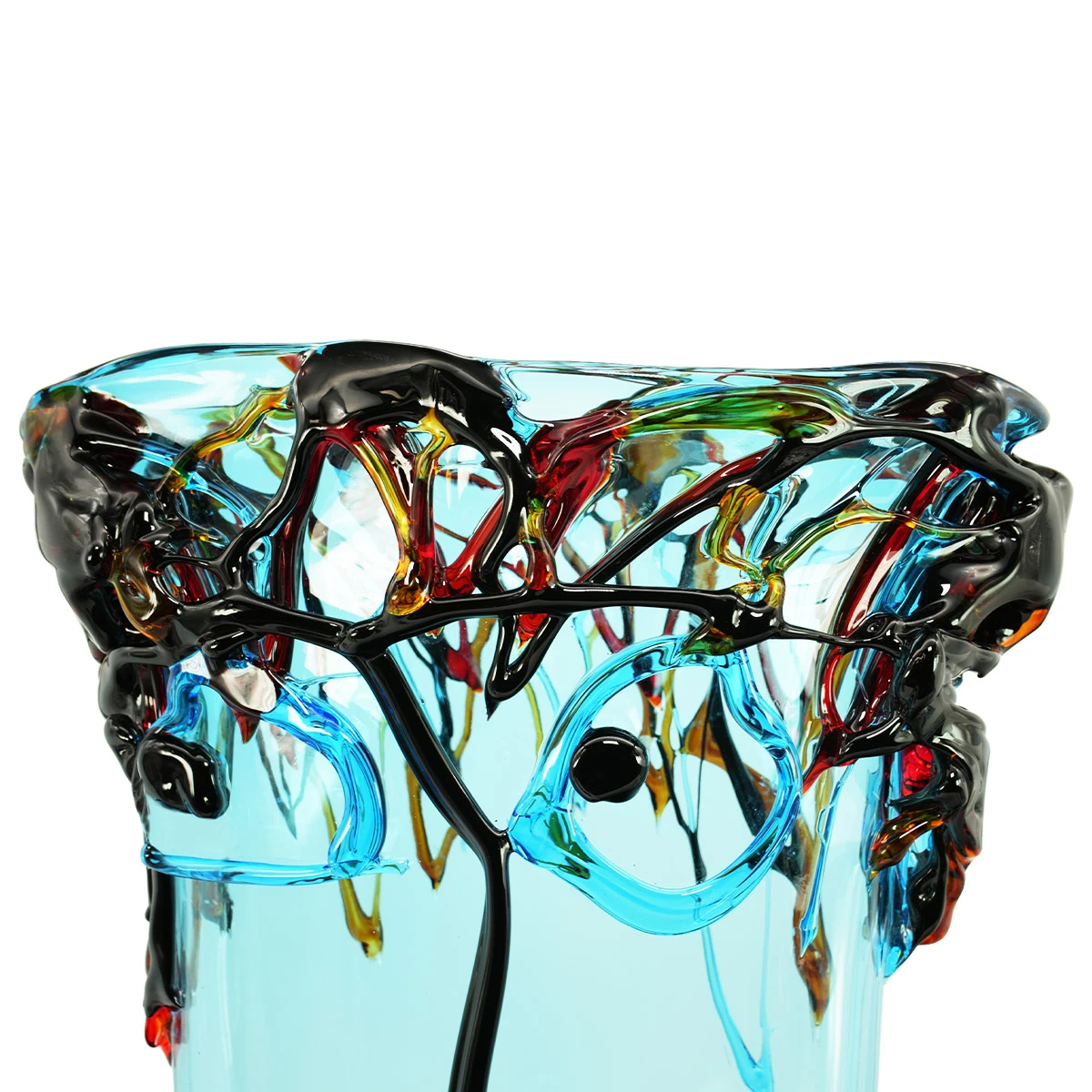 This vase expresses the bold artistic vision helped by amazing craftsmanship of Murano’s best glass masters. It represents the continuous evolution of the art of Murano Glass and its relevance in today’s global artistic landscape.