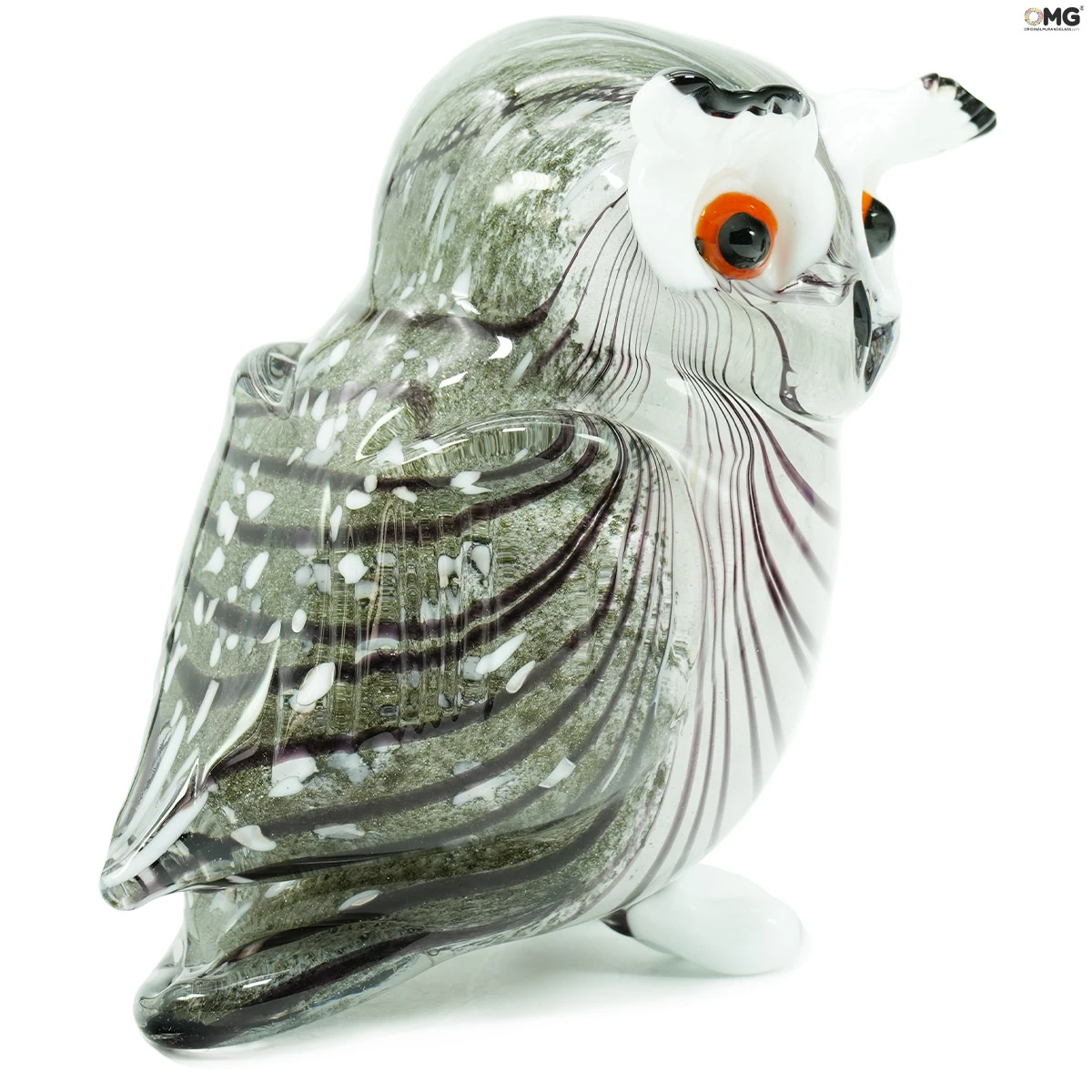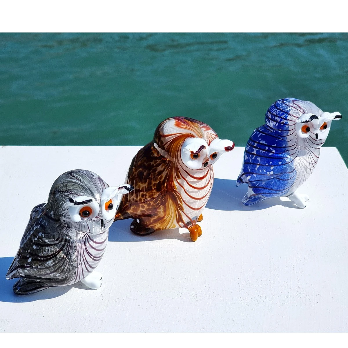 Lovely sculpture of handmade little owl on embellished, worked free hand on a punty in solid glass. Polished by hands. Beautiful lucky and decorative object. Excellent for who want make an original gift