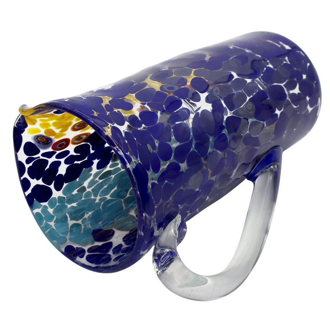 Pitcher in venetian glass handmade with the technique of glass blowing, with multicolored glass spots and millefiori decoration. This original Murano glass vase is signed by the glass master.