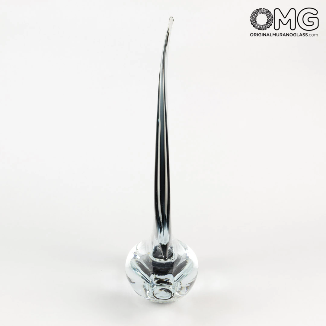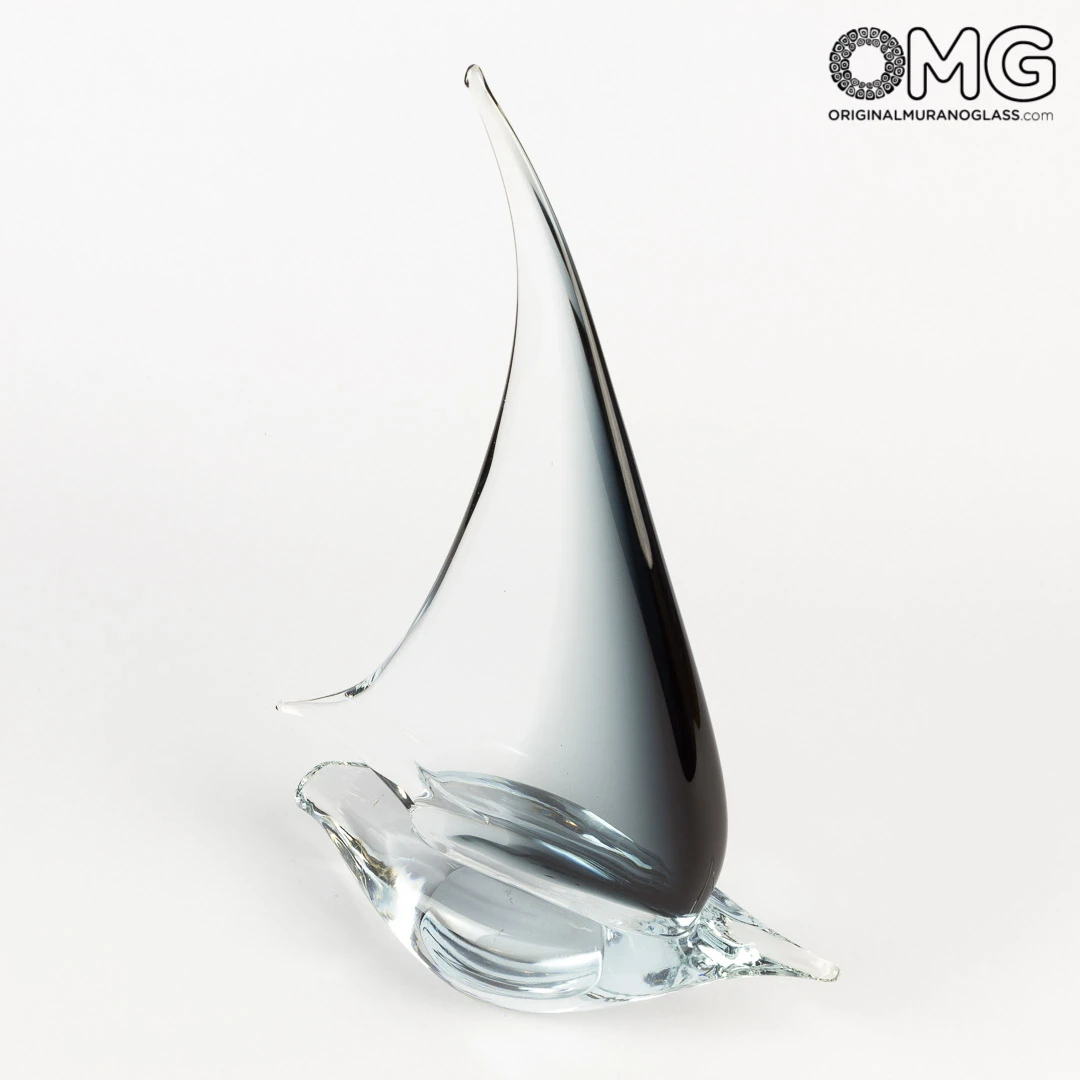 Exclusive and unique glass artwork of a handmade sailing boat in colored glass realized in free hand on a punty in solid glass.