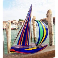 Sail Boat Mix Colored Cannes In Blue – Sculpture – Murano Glass