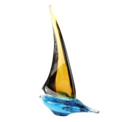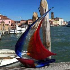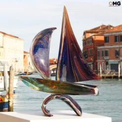 Sail Boat With Base – Chalcedony Glass – Original Murano Glass OMG