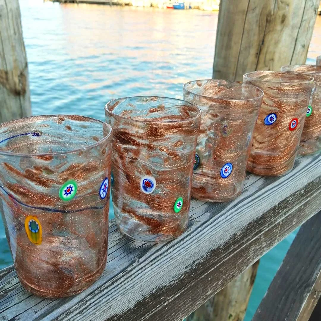 Make your table more precious with this set of 6 glasses, blown made in Original Murano Glass.