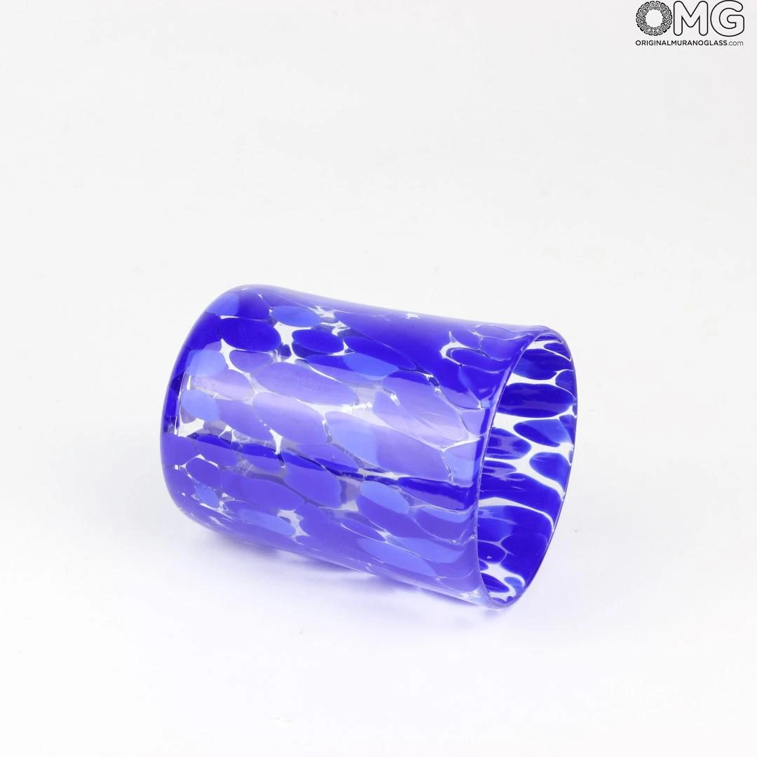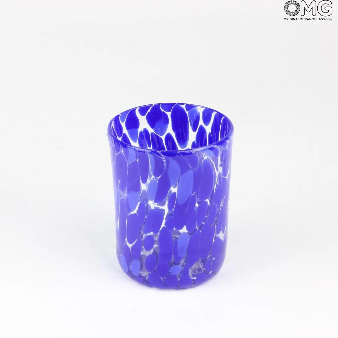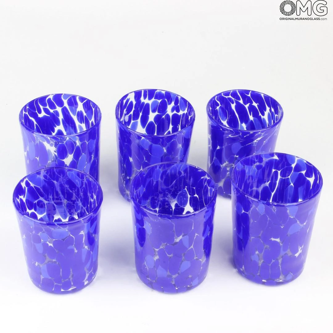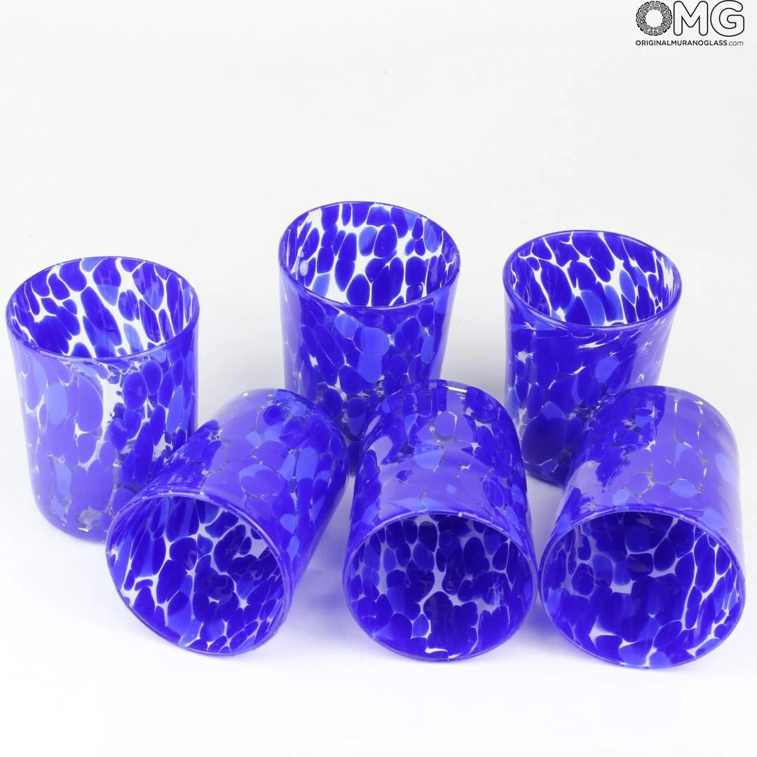Make your table more precious with this set of 6 glasses, blown made in Original Murano Glass with blue spots.