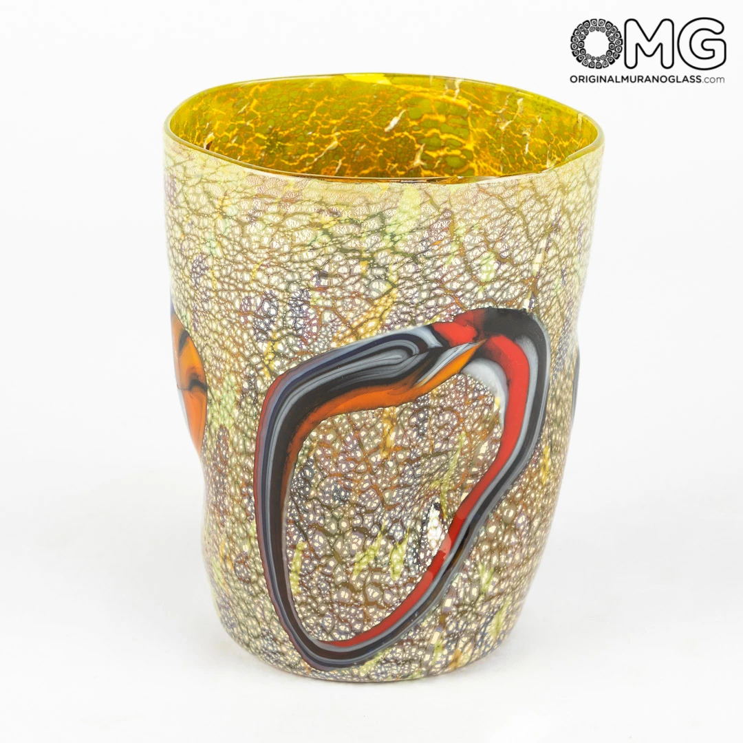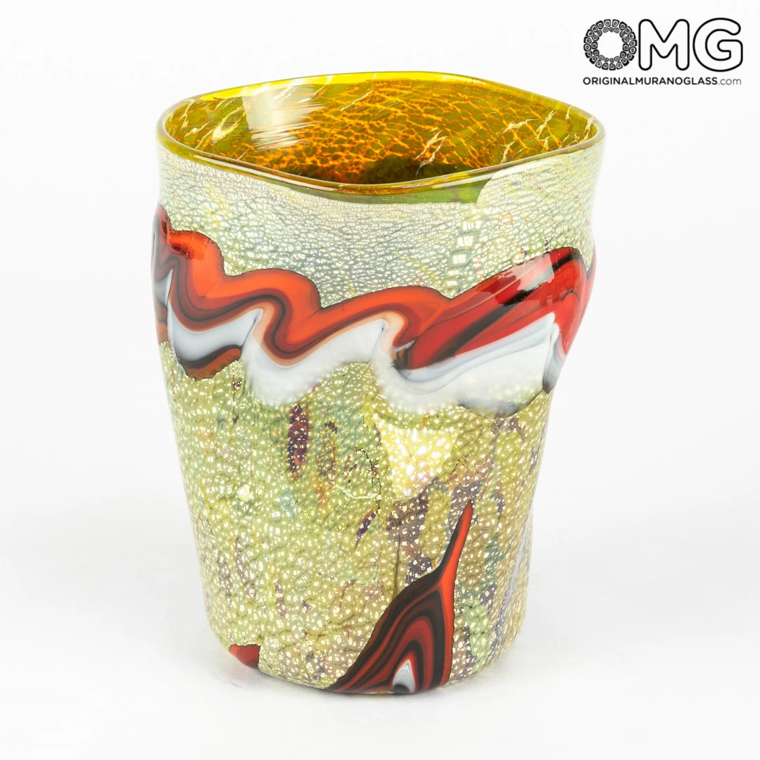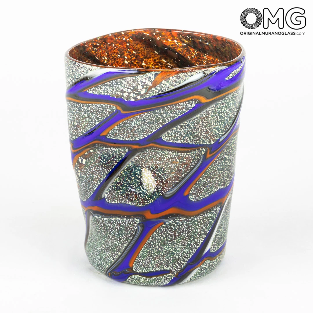 Very nice set of 6 glasses. All items are different, handmade with real silver leaf on a base of colored glass. It is the famouse “Goto da fornase”, the tradition says Glass that glass master uses to drink in Goto during working time in Furnace. Note: the set is always differents from the one in photos, we do not use stamps, and colors are mixed randomly, so murrines texture for each piece can be little different.