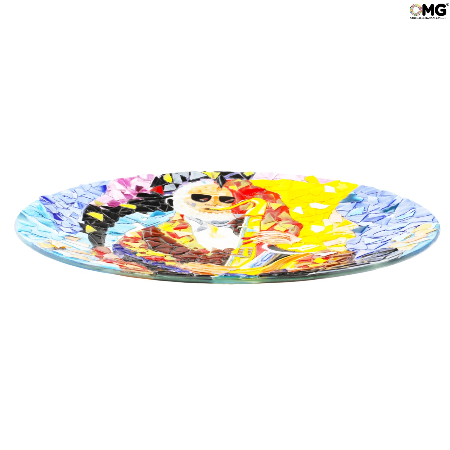 Plate made with the technique of fusing glass, assembling all single pieces.