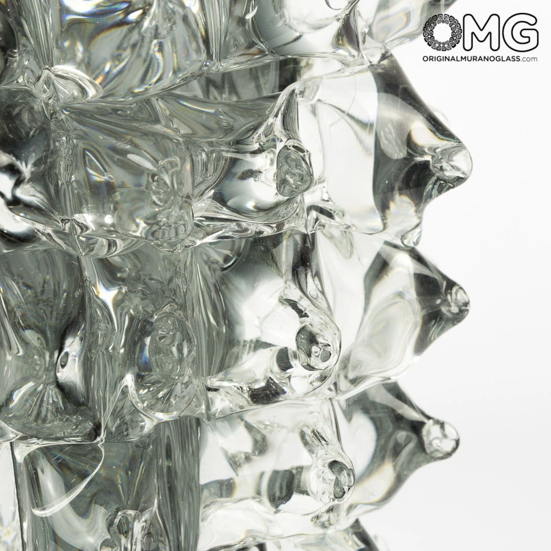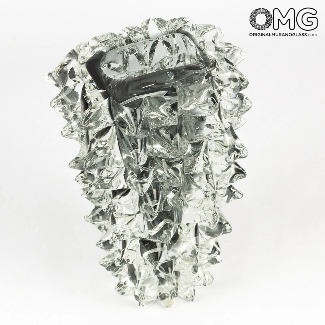 Handmade blown vase centerpiece in Murano glass worked with glass blowing and sommerso technique, characterized by a special surface texture.