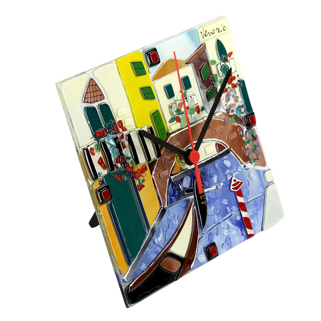 This elegant clock inspired by the famous city of Venice, is handmade with the technique of glass fusing putting togheter each single piece.