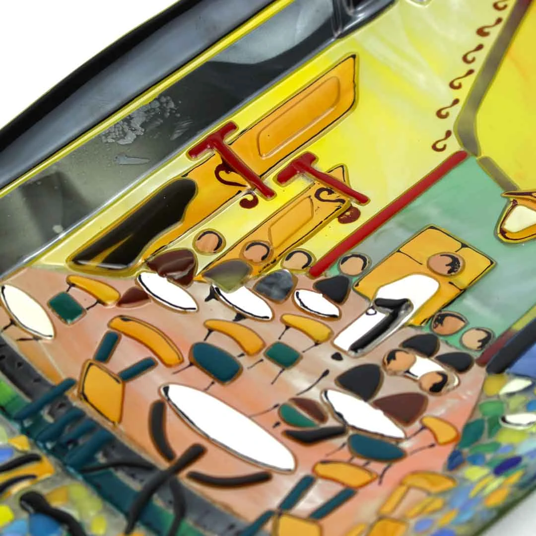 Plate made with the technique of fusing glass, assembling all single pieces.