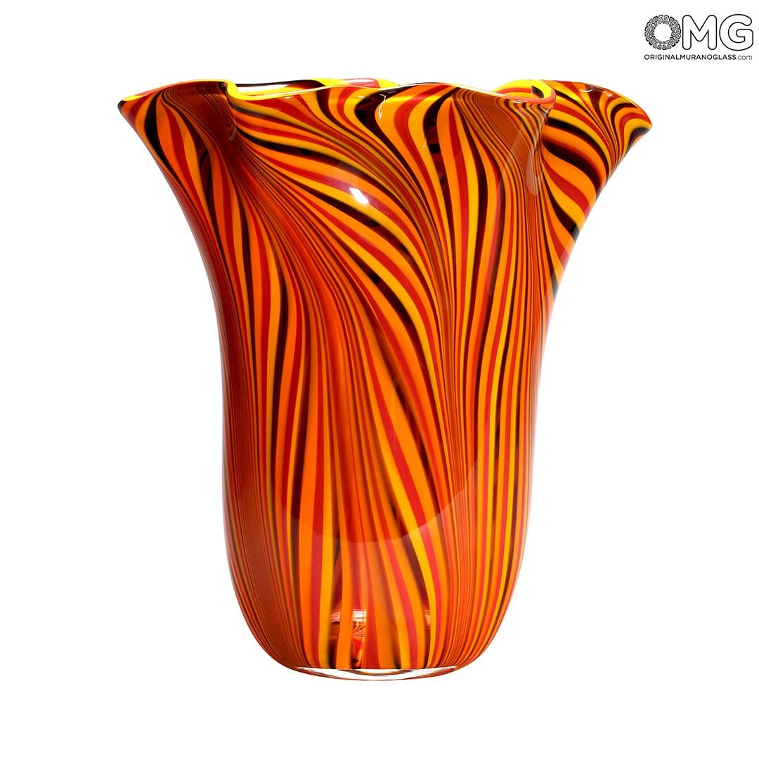The particular wavy texture and the alternation of colors were carried out by the master glassmaker in a masterly way to create a work of art of easy appreciation but of great scenic impact, ideal for embellishing any environment.