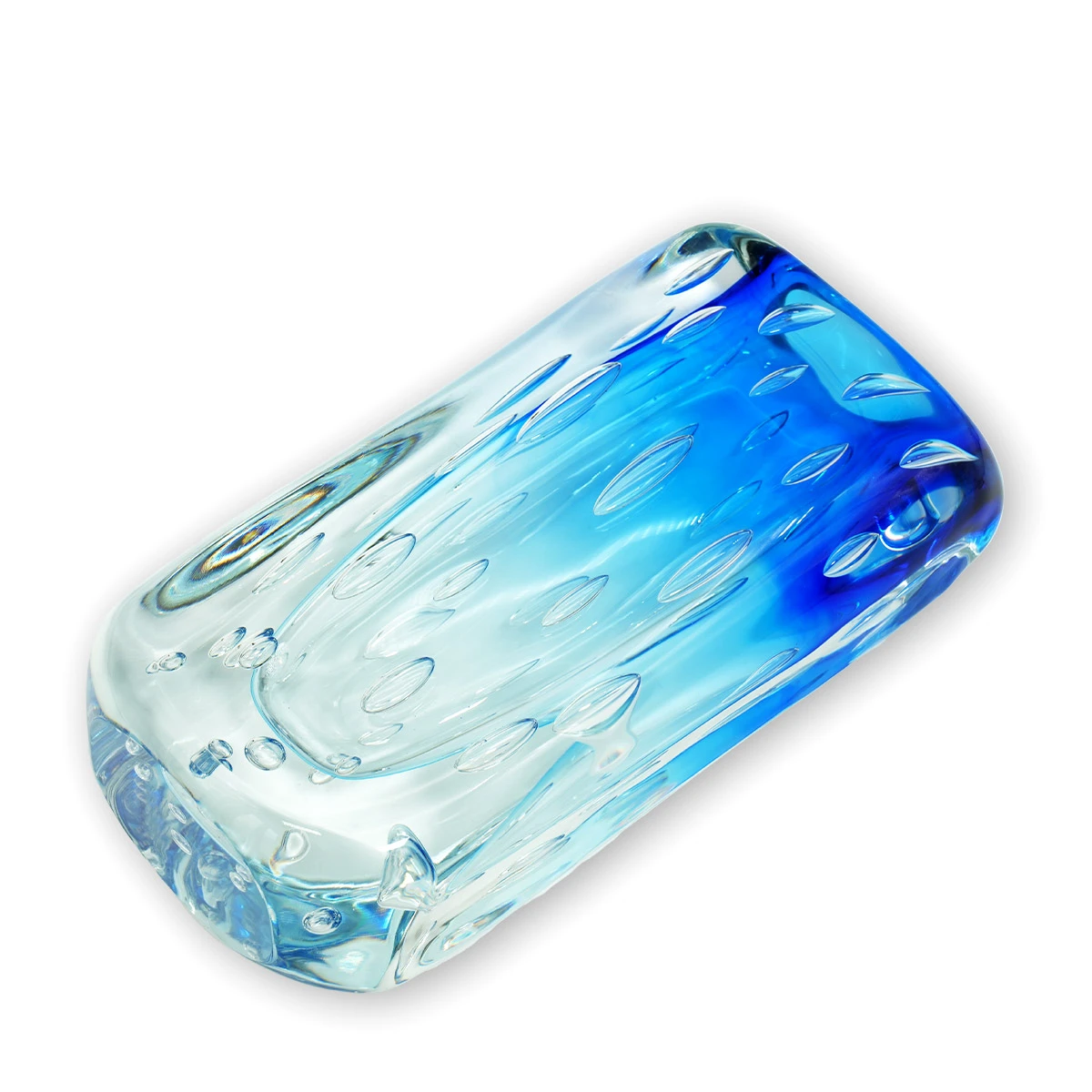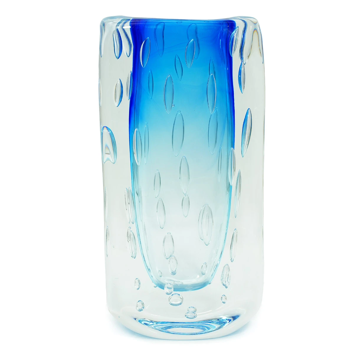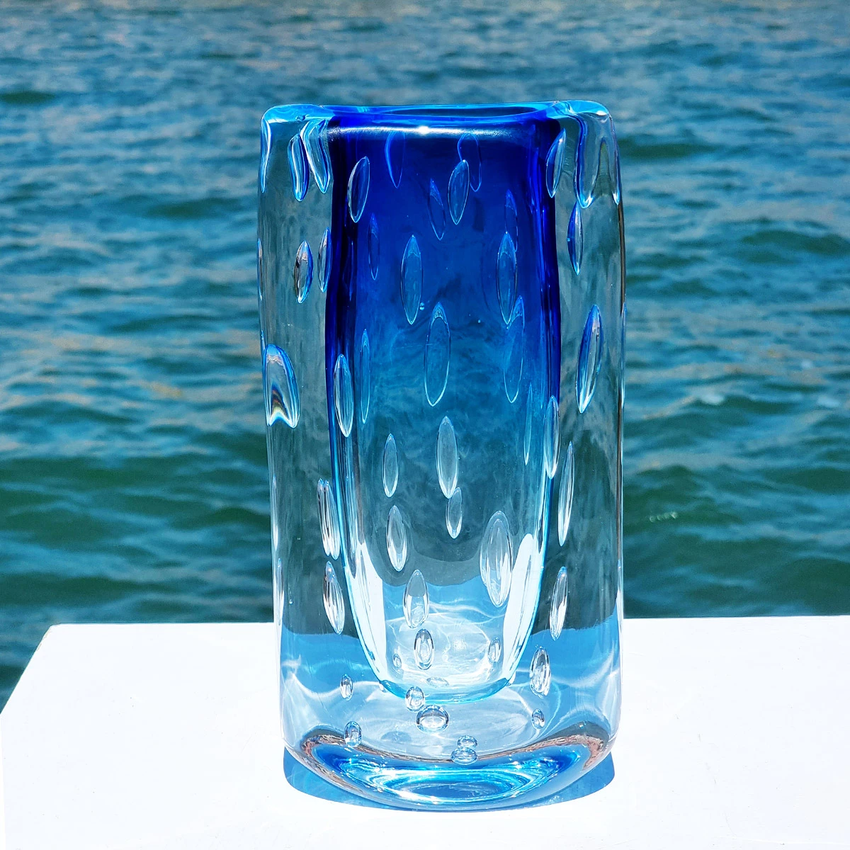 Luxury handmade vase with the famouse technique of glass Sommerso, realized in Murano Glass. A particular decorative effect with “bubbles”, distributed in layers within the thickness of the glass. After cooling down the first part of his piece, the artist condensed the work in the end by using submerged glass, known as the ‘Sommerso’ technique, (made by overlapping different layers of glass with a variety of consistency and colors) .