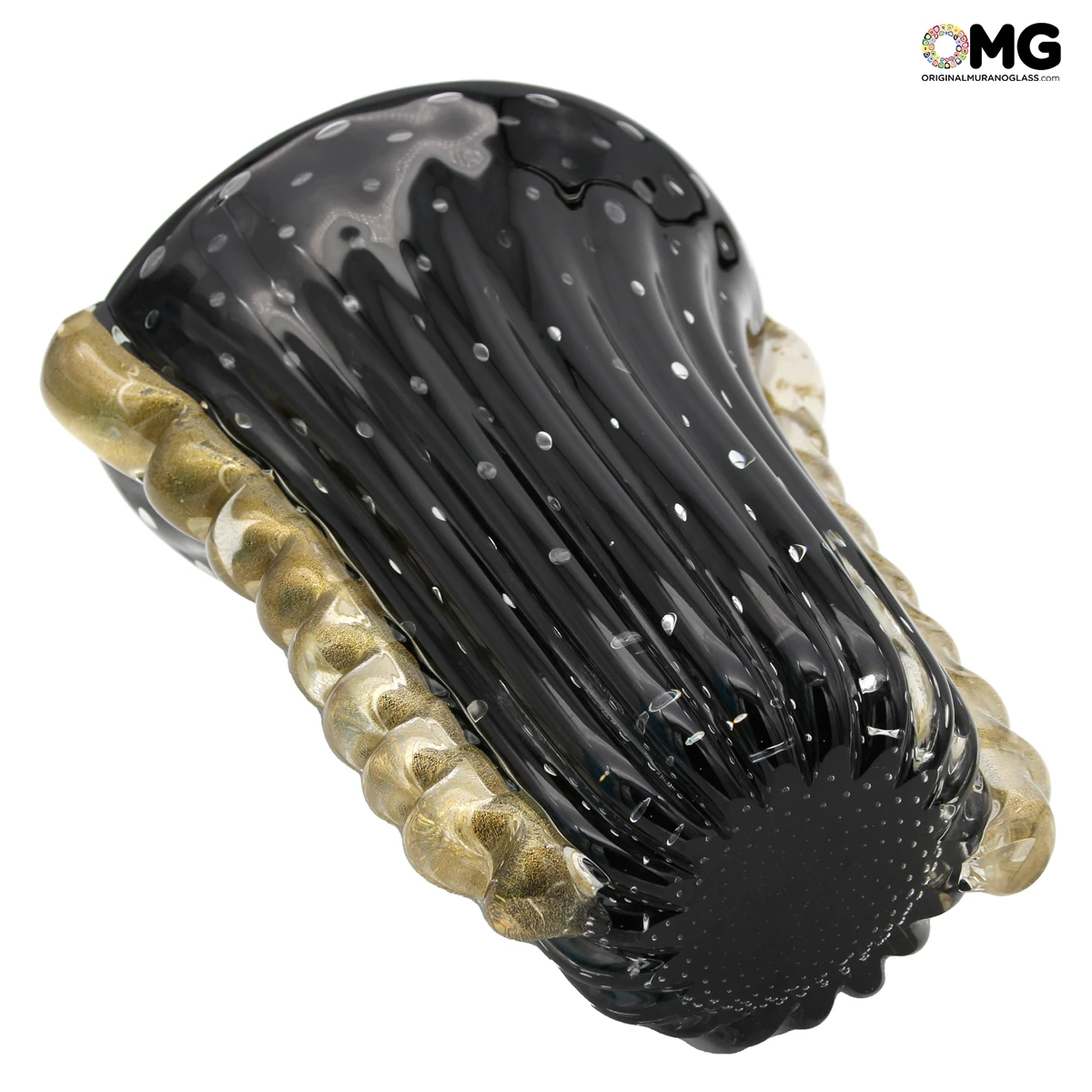 Luxury handmade venetian vase with the famouse blowing technique, realized in original Murano Glass with real gold leaf available in three dimensions.