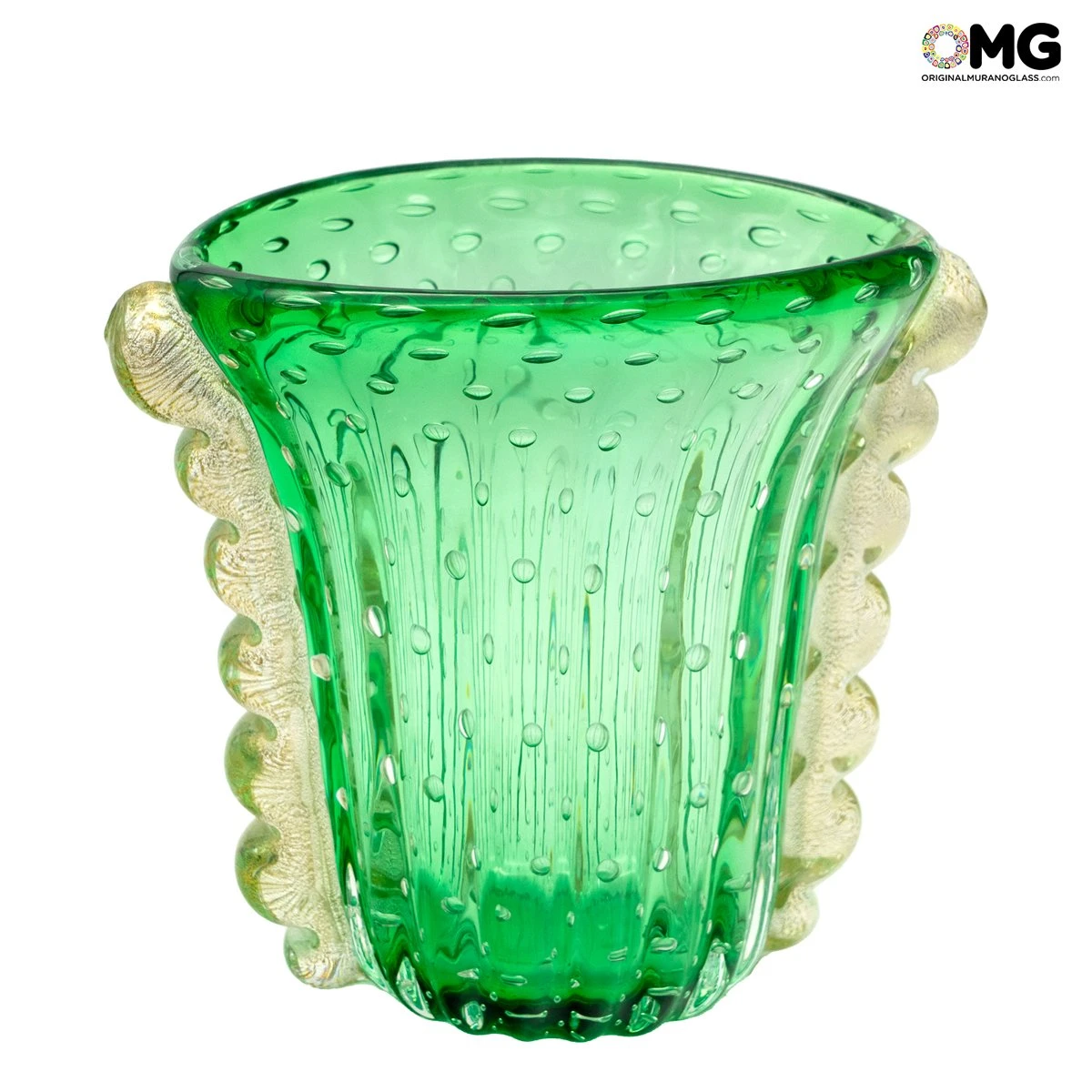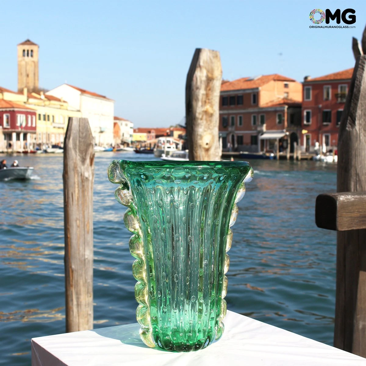 Luxury handmade venetian vase with the famouse blowing technique, realized in original Murano Glass with real gold leaf available in three dimensions.