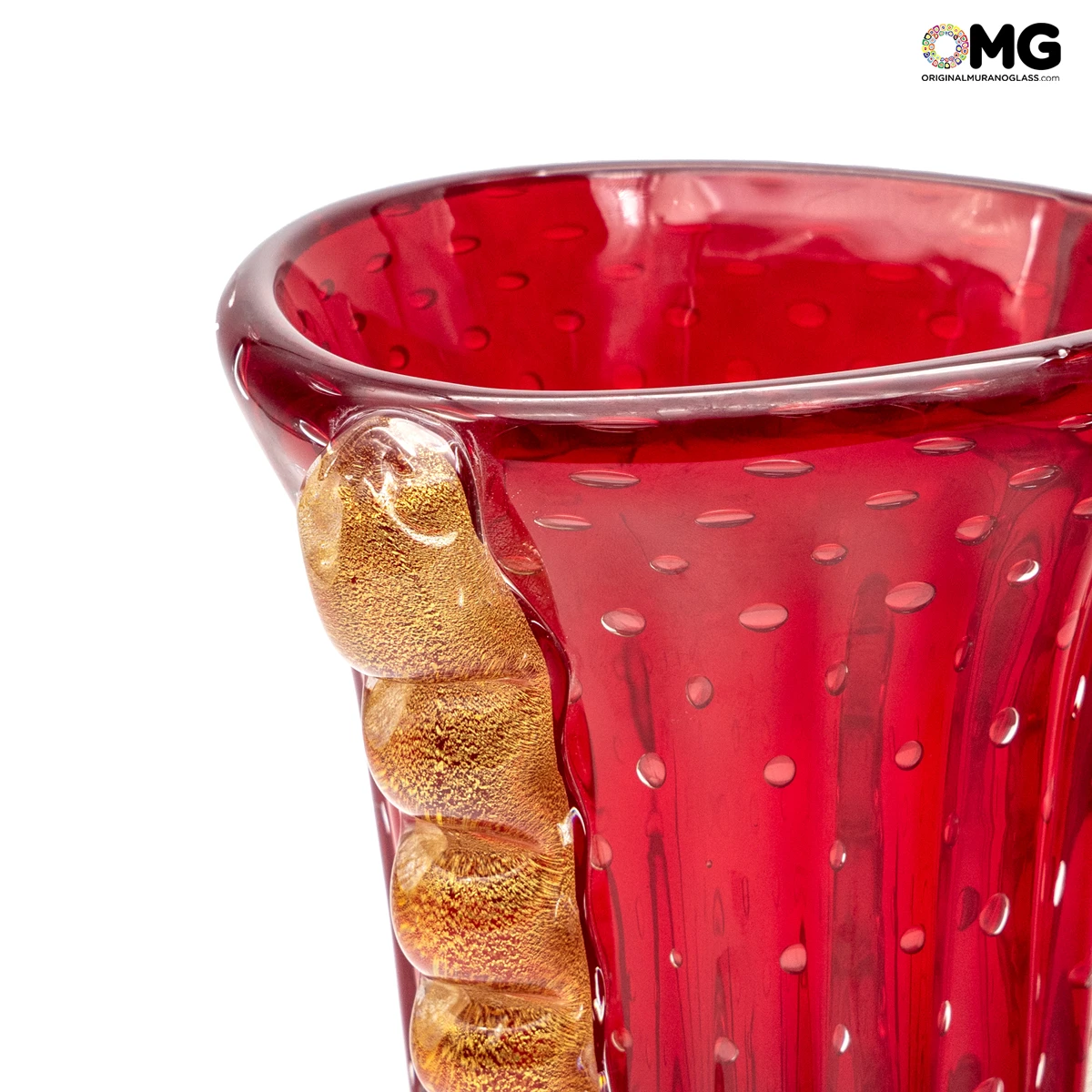 Luxury handmade venetian vase with the famouse blowing technique, realized in original Murano Glass with real gold leaf available in three dimensions.