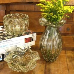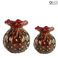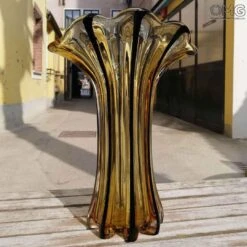 Flower Vase – Black And Avventurina – Original Murano Glass OMG