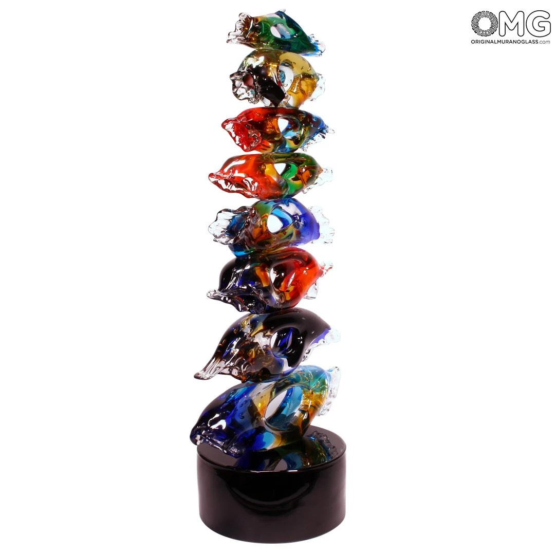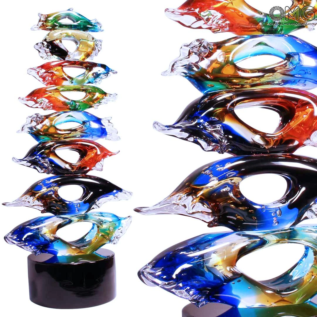 Exclusive Big Sculpture floating on a solid black base. Bright colors and great dimensions make it perfect for your modern home furniture. Artwork in Original Murano Glass OMG® hand-made according to the ancient tradition of Venetian glass.