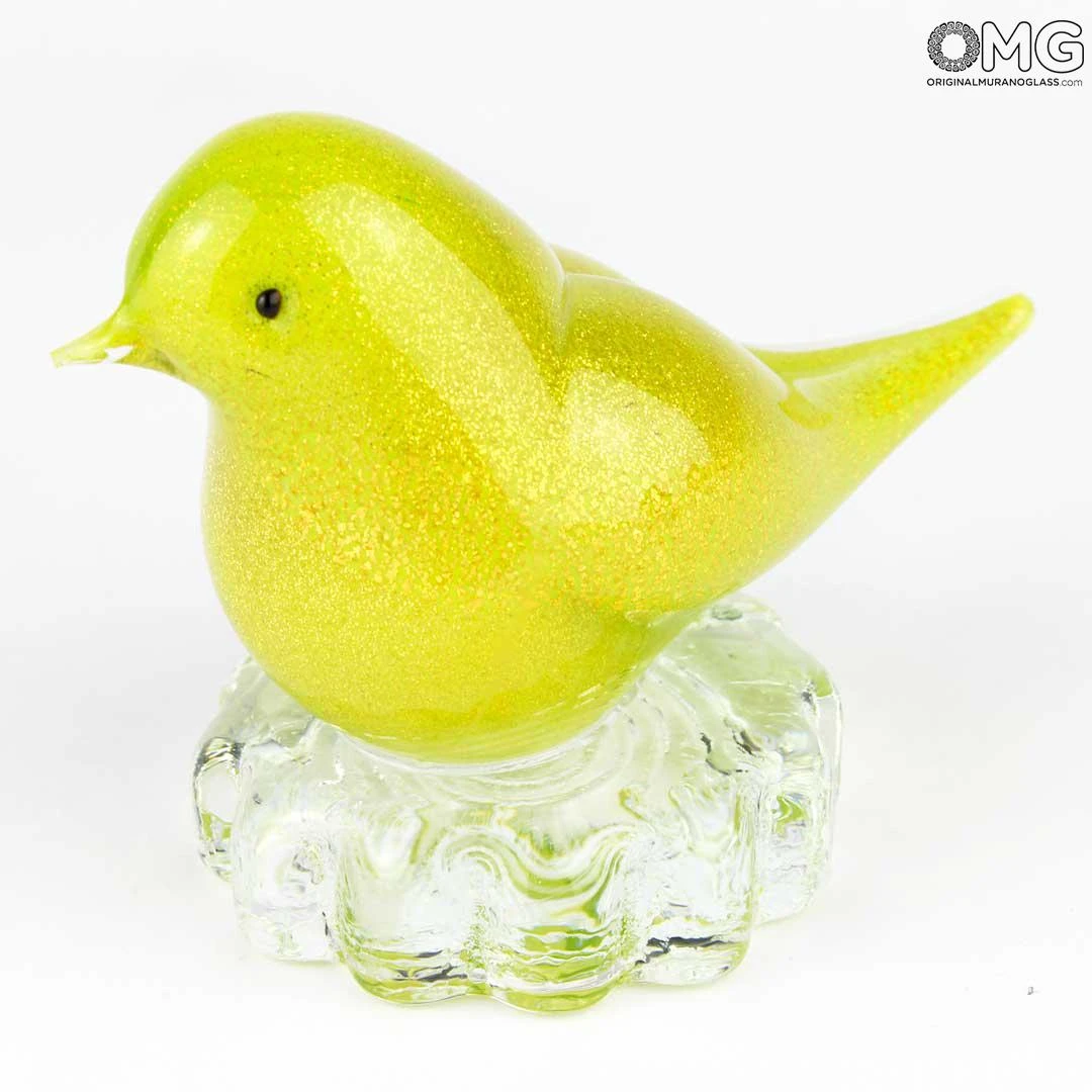 Lovely sculpture of handmade little bird on base ambellished by 24 carats gold decoration, worked free hand on a punty in solid glass. Polished by Hands.
